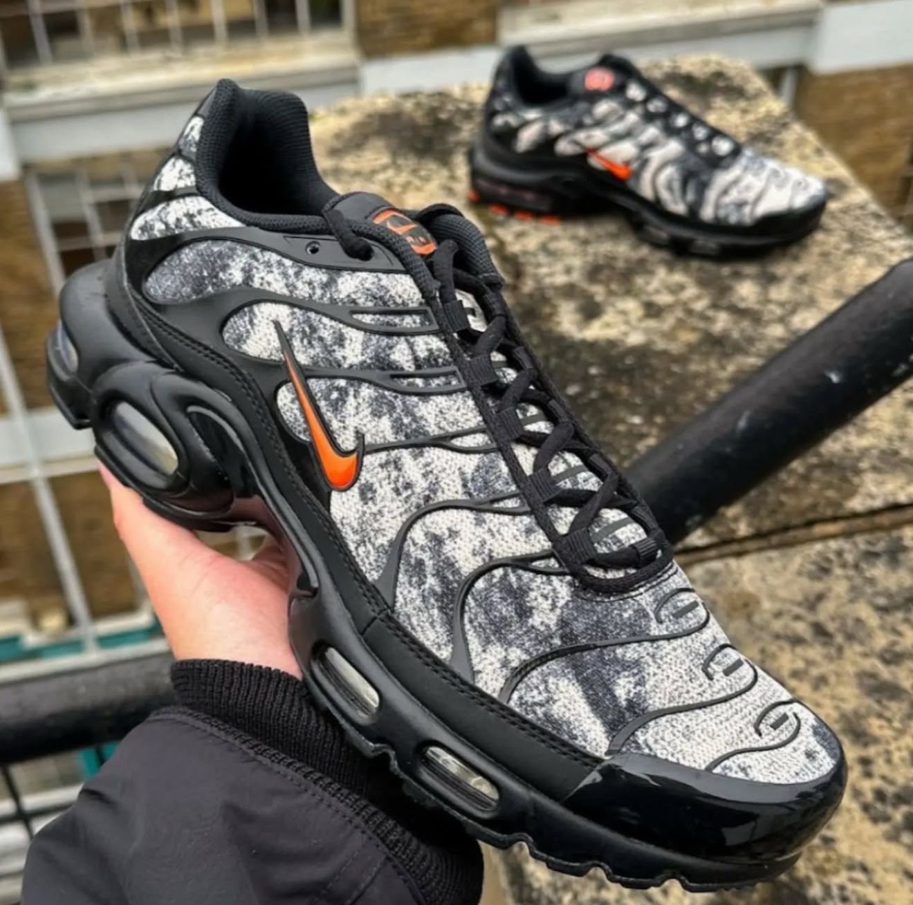 Buy Replica of Nike Airmax Plus TN Black Orange Camo Top Notch Quality. Comes With Original Box, Extra Laces.