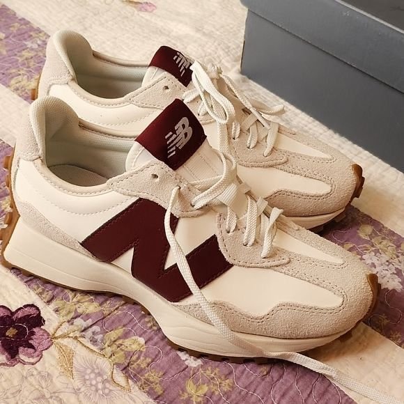 Buy First Copy NEW BALANCE 327 BEIGE MAROON Top Notch Quality. Comes With Original Box and Extra Laces.