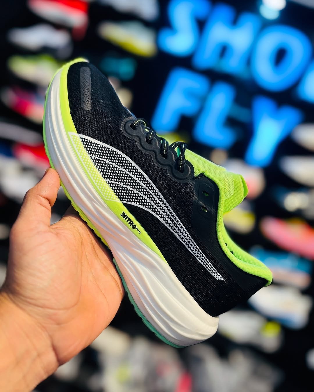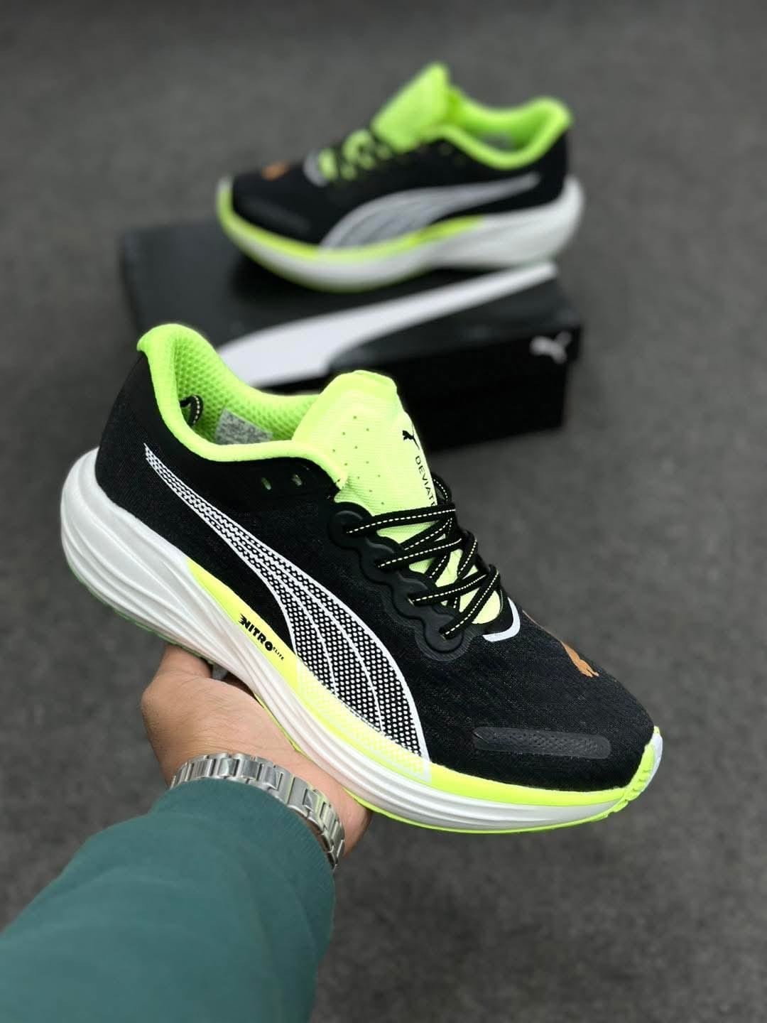Buy first copy Puma Deviate Nitro 2 Black Green Top Notch Quality. Comes With Original Box, Extra Laces.